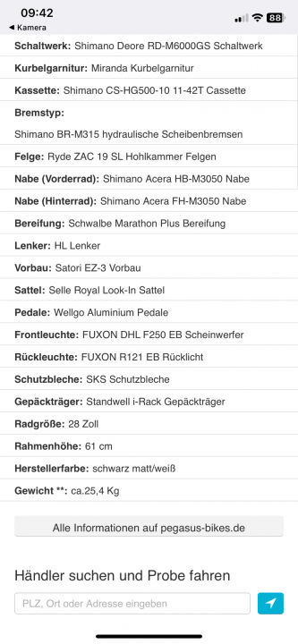 Herren-Trekking E-Bike Pegasus EVO 10 Premio mit Bosch Performance CX Motor, Shimano 10-Gang-Schaltung, Rahmenhöhe 61cm, 500 Wh Akku, Systemgepäckträger i-Rack, Gesamtlaufleistung nur rd. 4400 km, sehr guter Zustand. Verkauf von Privat, daher jede Gewährleistung ausgeschlossen. Auf den Fotos abgebildete Zusatzausstattung (Spiegel, Handyhalter, Minitasche) nicht enthalten, jedoch inklusive AXA Felgenschloss und Sicherungskette.